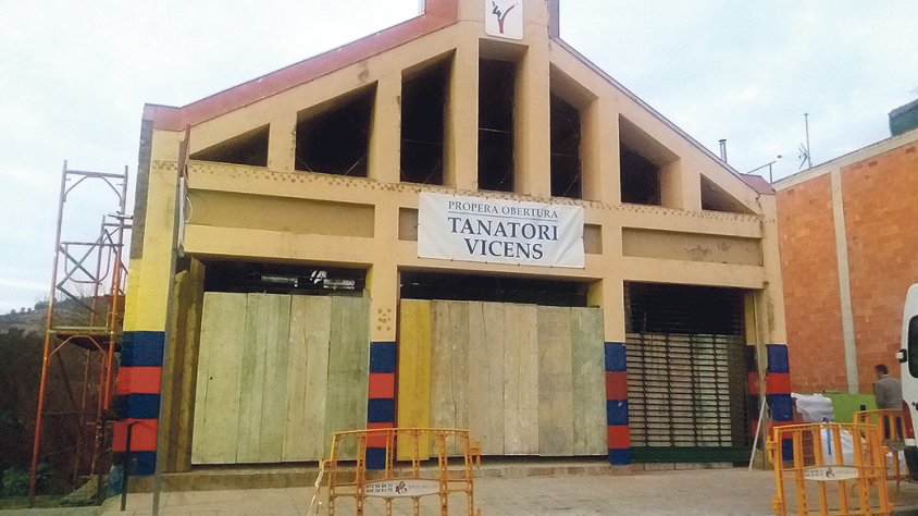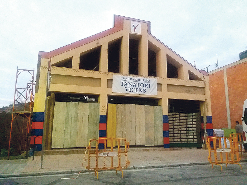 Fa unes setmanes van començar les obres per remodelar l’edifici, i la intenció de la funerària és obrir a finals de març (tot i que de moment encara no hi ha data d’inauguració). El responsable de l’empresa, Xavier Vicens, explica que «quan vam començar a parlar del projecte amb l’Ajuntament, vam dir que si tot anava de pressa es podria inaugurar per Tots Sants», però lamenta que «la realitat ha estat que a la data de referència tot just ens van concedir el permís d’obres».