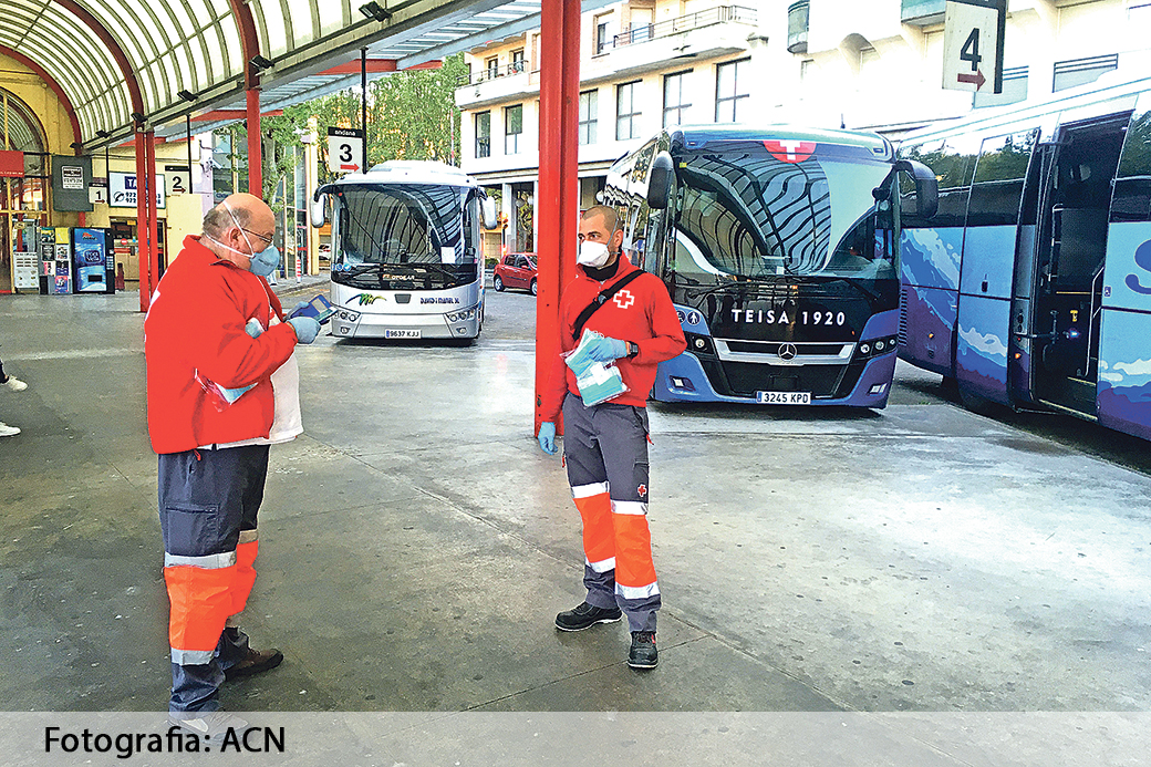 Després de la Setmana Santa, el dimarts 14, es va fer un repartiment massiu de mascaretes a les estacions de tren i de busos de la comarca. La distribució per a persones que anaven a treballar va anar a càrrec de voluntaris de la Creu Roja i de Protecció Civil. A banda, també en relació amb les mascaretes, aquest dilluns ja es començaven a repartir a les farmàcies les mascaretes gratuïtes procedents de la Generalitat. Se’n facilita una primera de franc amb la targeta sanitària.