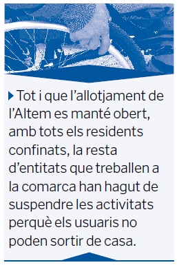 I enmig d’aquesta incertesa, en què lògicament tampoc poden oferir cap dels seus serveis, les famílies s’esforcen per intentar que l’estada d’aquestes persones a casa sigui al més portadora possible. «Depèn de cada un, perquè en tenim amb moltes malalties, però estan força neguitosos. Sobretot els autismes, que són els que necessiten poder sortir una mica, però en general tots, perquè són nens que necessiten diàriament totes les activitats», explica la Mercè, que afegeix: «No entenen el que passa i veuen una situació força diferent de la diària».