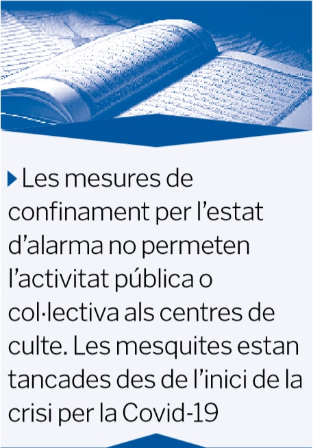 Amb l’estat d’alarma vigent, la comunitat musulmana ha iniciat aquest divendres, 24 d’abril, el mes sagrat del ramadà. Enguany les celebracions queden alterades si es comparen amb les d’anys anteriors. Les mesquites estan tancades per les restriccions decretades i les reunions socials també estan prohibides per la situació de confinament.