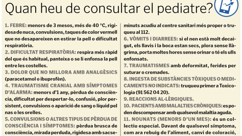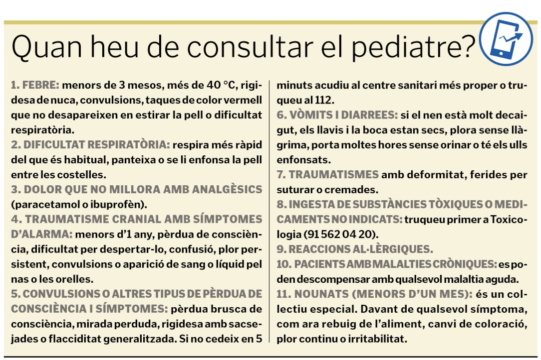 Sempre que sigui possible, prioritzeu el contacte telefònic o telemàtic amb el vostre pediatre perquè valori la necessitat d’acudir a la consulta o a urgències. Potser la vostra consulta es pot resoldre o fer-ne el seguiment per telèfon, sense necessitat d’exposar-vos a riscos innecessaris.