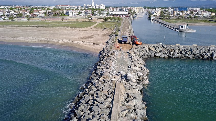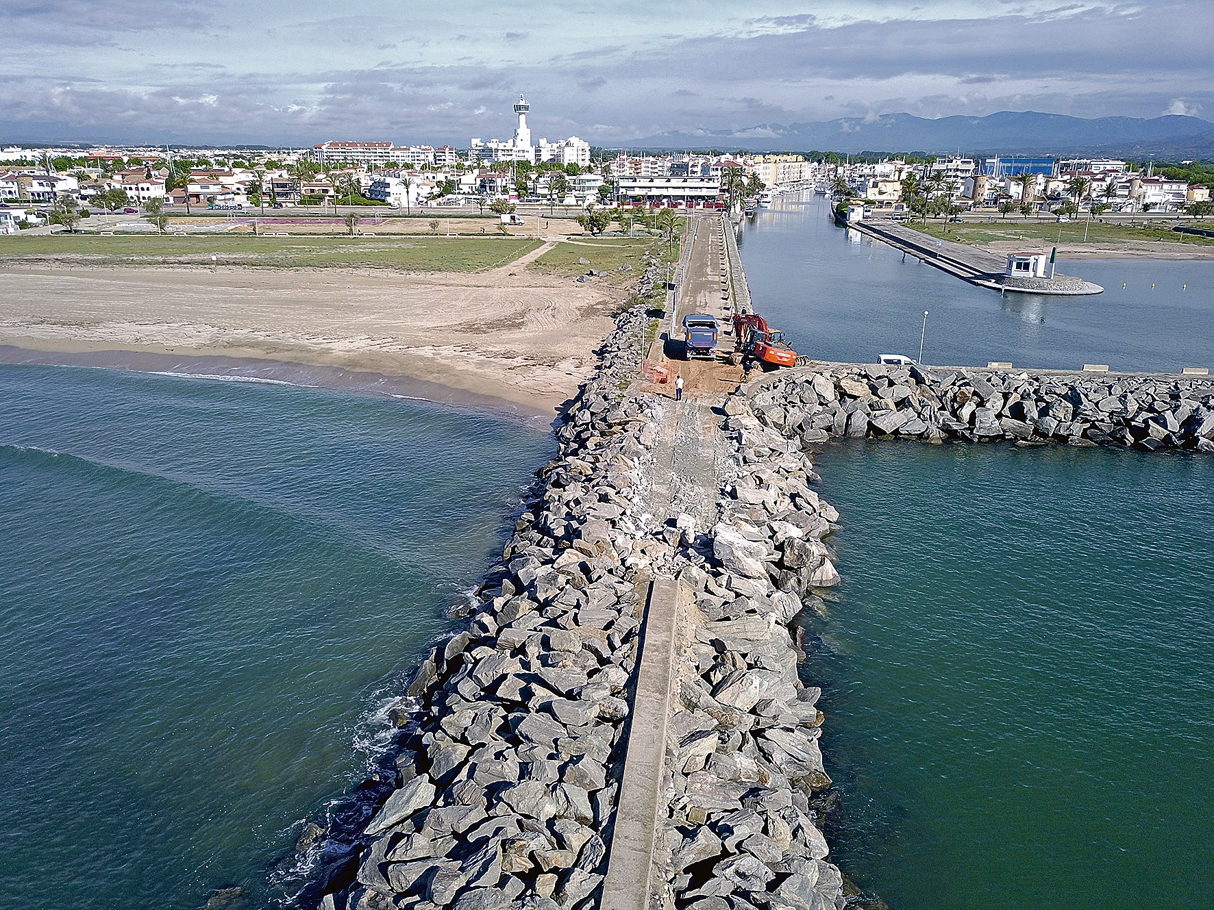 La marina d’Empuriabrava recuperarà en les properes setmanes la seva bocana original, que va quedar malmesa a principis d’any pel temporal Gloria. La tempesta va afectar principalment el dic de ponent, i el dilluns de la setmana passada en van començar les obres de reparació. Unes obres que permetran reconstruir aquest dic, però també reposar i reforçar l’espigó –que també va quedar molt deteriorat– amb unes 4.000 tones de pedra. A més, l’antiga balisa vermella se substituirà per una de més nova que s’adapta a la normativa actual. I també es refarà el camí que arriba fins a la zona del far, que es farà més ample. Si no hi ha cap contratemps, els treballs duraran entre 5 i 6 setmanes. I properament també es començarà a fer un dragatge per recuperar el calat perdut també a causa del Gloria.