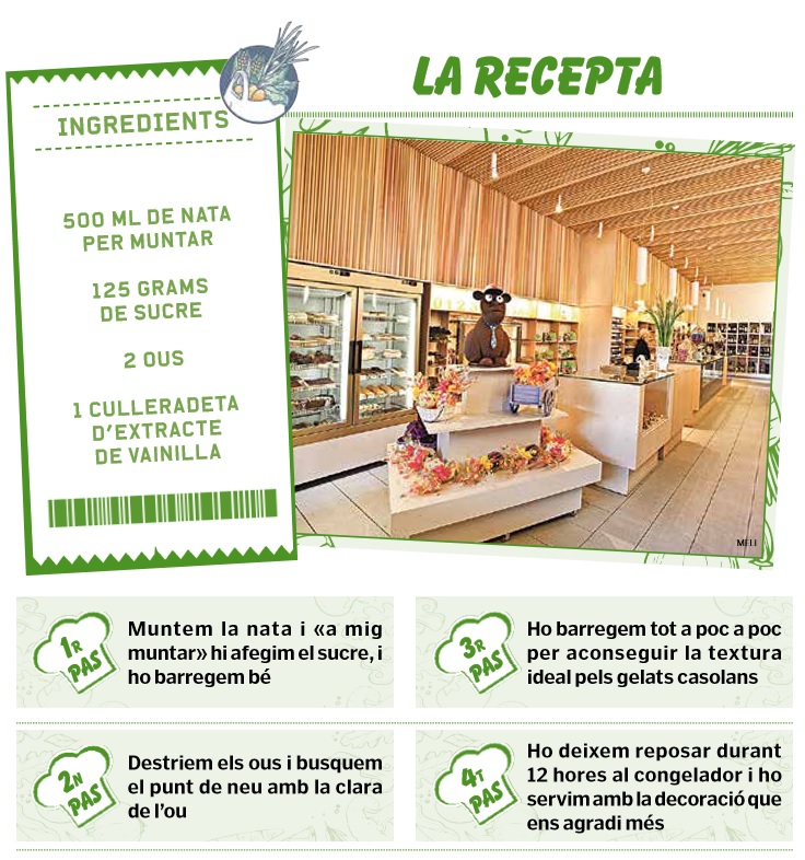ELABORACIÓ. Des de l’obrador figuerenc ens expliquen que el primer pas que cal seguir per fer el gelat casolà és muntar la nata. Per tal d’aconseguir una textura ideal, els experts aconsellen afegir-hi el sucre un cop la nata estigui «a mig muntar». Quan hi hem afegit el sucre, acabem de muntar-la bé. El segon pas és integrar-hi els ous però per fer-ho també detallen una tècnica especial.
