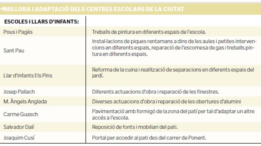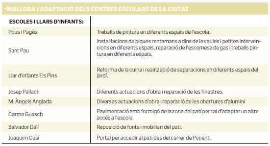L’Ajuntament de la ciutat ha presentat un llistat de les reformes i millores dels diferents centres escolars