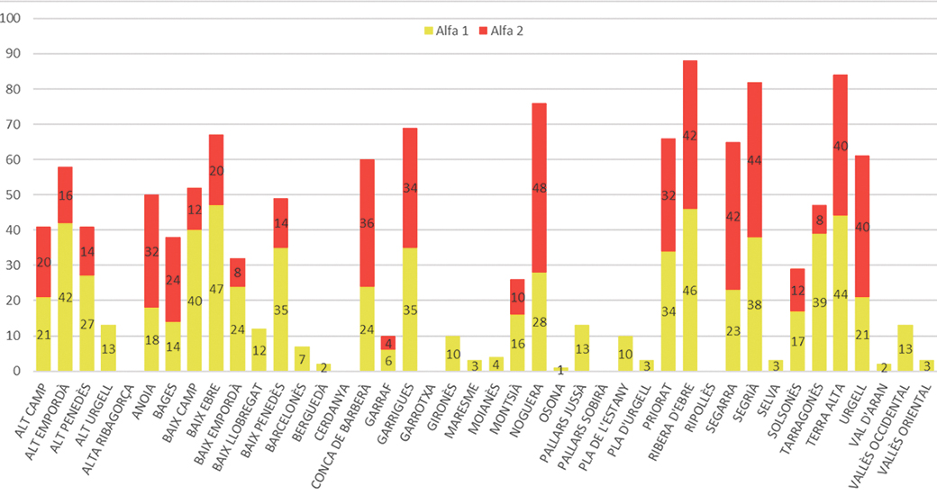 PLA ALFA: Recompte dels dies que es va activar, comarca a comarca[/caption]Els Agents Rurals destaquen que «a l’inici de la campanya, la pluviometria mitjana acumulada durant els darrers sis mesos era superior a la mitjana, amb precipitacions molt ben distribuïdes arreu del país». I afegeixen que «aquesta abundància pluviomètrica ha sigut un dels factors principals que ha rebaixat el risc d’incendi, i ha fet que la humitat de la vegetació s’hagi mantingut alta i el nivell de sequera de les zones forestals fos força baix». I malgrat que els focs que van afectar l’Alt Empordà es produïssin durant la primera quinzena de juliol, els experts consideren que els períodes de més risc es van donar més tard (entre el 27 de juliol i el 2 d’agost, entre el 7 i el 10 d’agost, i entre el 20 i el 23 d’agost). De fet, va ser precisament durant aquests dies quan es va activar el Pla Alfa a la comarca, sobretot arran de la tramuntana. Set dies es va activar el nivell 3 i quatre dies més, el nivell 2.