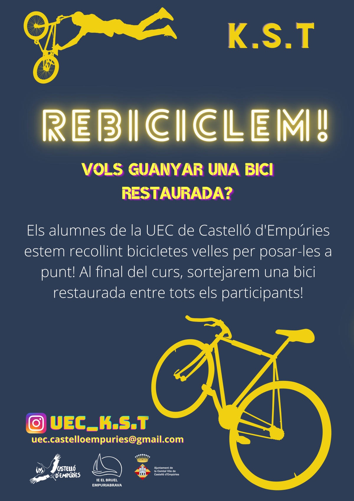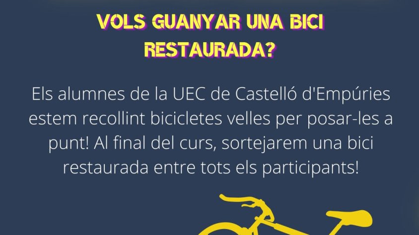 Per això, des de la UEC fan una crida a les persones del municipi que tinguin una bicicleta vella o que no utilitzen i que vulguin donar-la, perquè des de Rebiciclem se’n pugui tornar a donar ús. Només cal enviar un correu electrònic a uec.castelloempuries@gmail.com. Des de l’organització s’encarregar de fer la recollida a domicili.