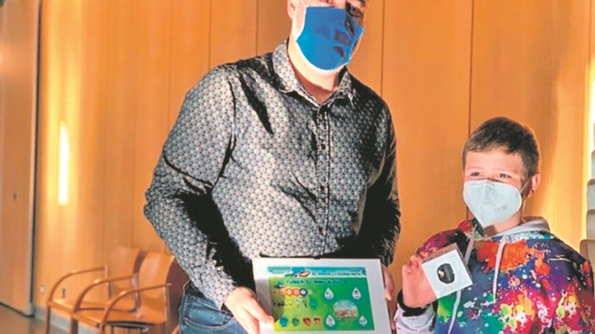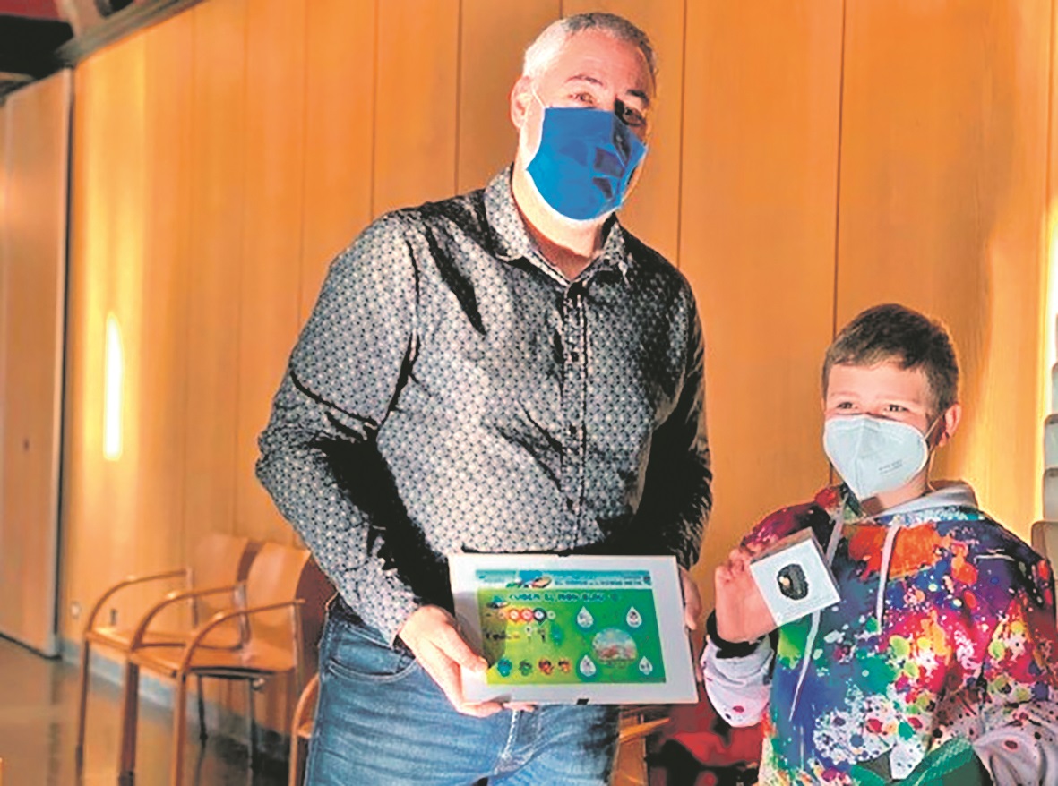 L’alcalde de Castelló d’Empúries, Salvi Güell, i la regidora d’Ensenyament, Anna Massot, acompanyats pel responsable d’Aqualia de Girona Nord, Jordi Johé, han lliurat un Smart Watch a Pau Portell Pino, alumne de l’escola Ruiz Amado , per quedar finalista de la 18a Edició del Concurs Digital Infantil que, any rere any, organitza Aqualia per conscienciar i educar els més petits sobre la importància de l’aigua i el treball que hi ha darrere d’obrir l’aixeta i disposar d’aigua de qualitat.