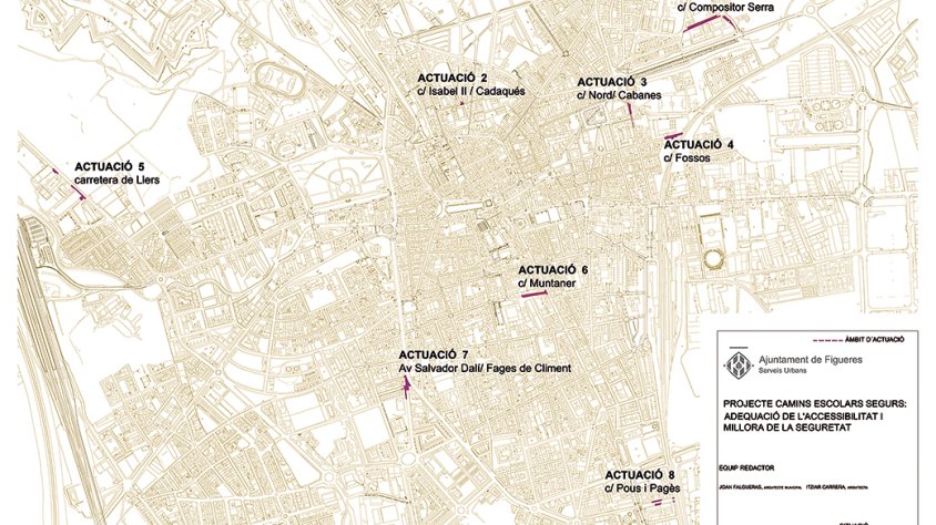 L’Ajuntament de Figueres té previst executar aquest estiu vuit projectes per millorar l’entorn de diversos centres educatius de la ciutat i crear itineraris escolars segurs. En total, s’hi invertiran 597.758 euros. A l’entorn de l’Institut Monturiol, es traslladaran unes columnes per ampliar la vorera del carrer Compositor Serra, i també se senyalitzaran els passos de vianants i es recuperarà la vorera de la via Làctia. A prop del Cor de Maria, a la cruïlla d’Isabel II i Cadaqués, es resoldran els problemes d’accessibilitat, es pavimentarà la cruïlla a nivell i se senyalitzaran els passos de vianants per a persones invidents. A la vora de La Salle s’hi executaran dos projectes: un a la cruïlla nord de Cabanes, on s’habilitarà un pas de vianants adaptat, s’hi plantarà arbrat, es milloraran els serveis i s’ampliarà la vorera oest des de la cruïlla; i l’altre al carrer dels Fossos, on es renovarà la pavimentació, s’ampliaran les voreres i es milloraran els serveis.