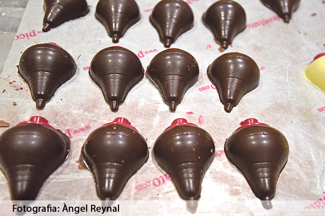 DE L'OBRADOR A LA TAULA. L’Opera Pastisseria és un dels establiments que juntament amb L’Obrador d’en Quimo, Pastisseria Fàbrega, Pastisseria Parc Bosch, Pastisseria Talldolç i la fleca Maia, s’encarreguen de l’elaboració d’aquestes delícies. El seu mestre obrador, Salvador Muñoz, explica com és el procés de creació «cadascuna de les tres variants de xocolata té un tipus de temperatura diferent. Nosaltres preparem les dues parts que conformen la baldufa amb un motllo i abans de juntar-les col·loquem la petita baldufa de fusta l’interior. Com un ou kinder... però amb qualitat».