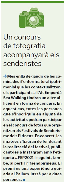 Esport, cultura i paisatge. Aquests són els pilars que edifiquen l’Alt Empordà Sea Walking, una proposta que s’emmarca en els Festivals de Senderisme dels Pirineus i que aquest pròxim cap de setmana, del 24 al 26 de setembre, viurà la seva tercera edició. L’activitat, que s’articula entorn de les xarxes de camins d’Itinerànnia i en paisatges suggerents de l’Alt Empordà, van acompanyades del guiatge de persones expertes en senderisme i d’una proposta de tast de producte de quilòmetre zero.