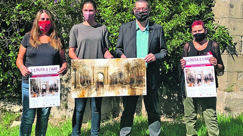 Pintura, escultura i fotografia presentades en les tècniques més diverses, ompliran, del 9 al 12 d’octubre, disset espais del centre històric de Castelló d’Empúries, en el que serà la 14ª edició de la Ruta de l’Art. Una celebració que arriba sense «tants entrebancs com l’any passat i que van ser superats amb nota alta i gran quantitat de públic» ha explicat la pintora i comissària de la Ruta de l’Art, Anna Maria Constanseu, durant la presentació de la ruta celebrada el darrer dijous als Jardins del Palau Macelli, un dels disset espais expositius que acolliran peces aquest any. En l’acte la van acompanyar l’alcalde, Salvi Güell; la regidora de Cultura, Xon Hugas, i Aida Mauri, l’artista que ha cedit l’obra a partir de la qual s’ha creat el cartell d’aquesta edició.