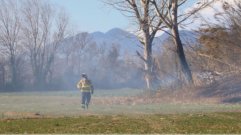 ENSURT A GARRIGUELLA. I amb el foc de Peralada ja extingit, dijous va ser el torn de Garriguella. En aquest cas, un petit incendi va cremar uns 850 m2 de canyes al costat d’una riera, al camí de Llançà.