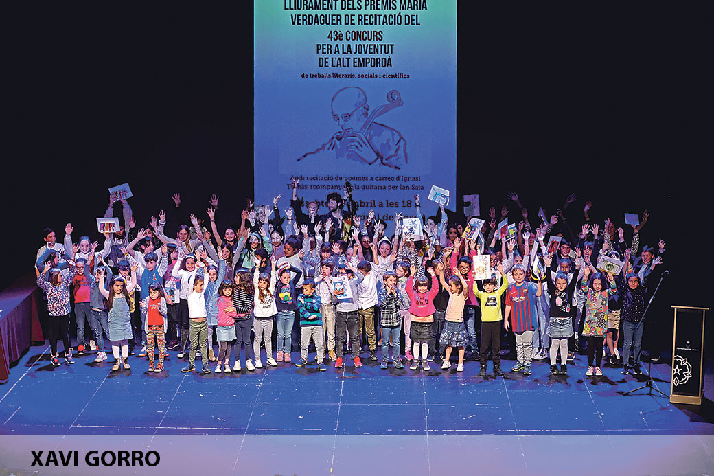 El Teatre de Roses va ser l’escenari on dissabte es van entregar els premis Maria Verdaguer de Recitació, corresponents al 43è concurs d’Òmnium Cultural per a la joventut de l’Alt Empordà. Un acte on es van repartir un total de 96 premis entre els 530 alumnes de 1r a 6è de primària d’arreu de la comarca que han participat en aquest certamen. Durant la celebració del lliurament es va comptar amb la recitació de poemes a càrrec d’Ignasi Tomàs, acompanyat a la guitarra per Ian Sala.