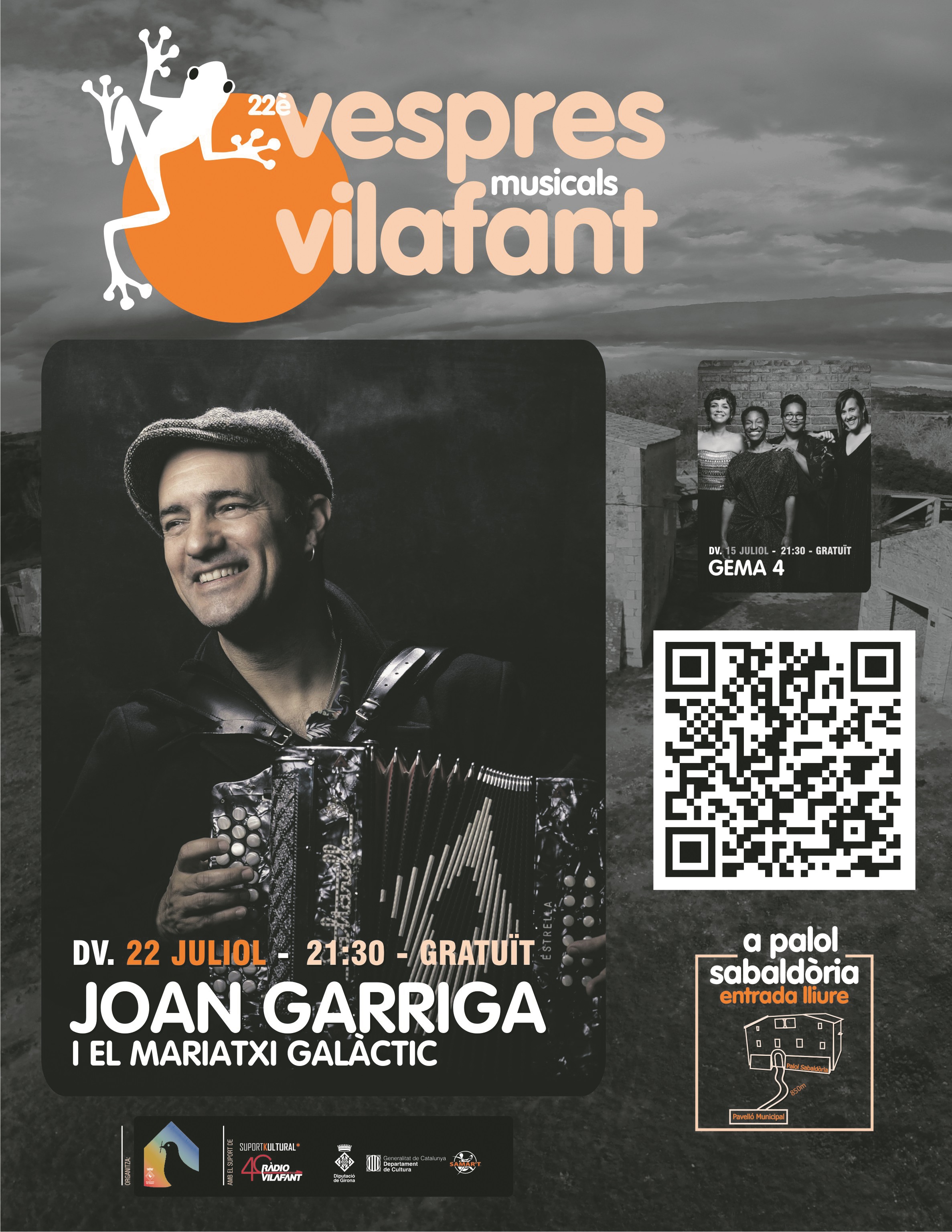 Aquest divendres se celebrarà el darrer concert de la 22a edició dels Vespres Musicals de Vilafant. I tancarà el cicle, ni més ni menys, el fundador del grup musical Dusminguet i qui va ser també l’ànima de La Troba Kung-Fú: Joan Garriga. Tal com apunten des de l’Ajuntament de Vilafant, «Garriga és una figura clau per entendre l’evolució de la música popular del segle xxi feta a Catalunya. Després de compondre i interpretar en directe la banda sonora dels dos darrers espectacles teatrals d’Oriol Broggi, el codescobridor de la Rúmbia —barreja de rumba i cúmbia amb denominació d’origen vallesana— acaba de debutar amb el seu nou àlbum, que apunta a clàssic instantani».