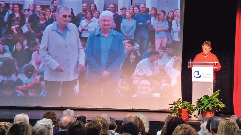 Càlid i emotiu comiat el que es va viure divendres 14 d’octubre a les 7 de la tarda a la sala d’actes de les Escolàpies Figueres, on es va homenatjar Maria Teresa Coll i la Quimeta Cardona. L’acte, que va emplenar la sala, va comptar amb la presència d’una de les homenatjades, Maria Teresa Coll, i amb diversos parlaments, en què es va posar de relleu la trajectòria del centre. Una institució que durant més de 190 anys ha estat la llar de milers de nenes que van accedir-hi per poder fer escola.