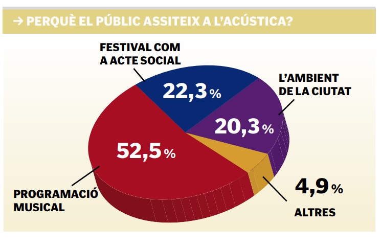 L’estudi també conclou que l’aportació municipal a l’Acústica segueix essent una de les més rendibles de la ciutat, amb un retorn de 10,18 € per cada euro invertit. «Aquest retorn ens demostra que la inversió està més que justificada. Es va ampliar de 240.000 € a 260.000 €, i tot i les dificultats d’aquest 2023 amb la congelació de taxes, es mantindrà», ha afirmat l’alcaldessa durant la presentació dels resultats de l’estudi.