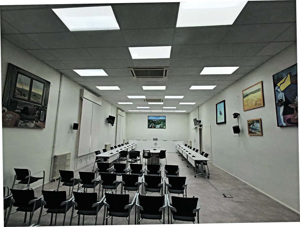 Els serveis tècnics municipals van elaborar el plànol de replanteig del saló de plens per a la col·locació i distribució de les obres, amb l’assessorament del Museu de l’Empordà. El quadre de Marta Bellvehí que hi havia al saló de plens s’ha instal·lat al centre cívic Joaquim Xirau.