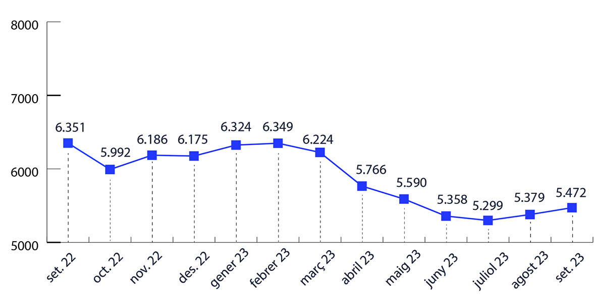En termes interanuals, d’altra banda, ha continuat la caiguda de la desocupació, aquesta vegada de manera significativa: així doncs, al setembre de 2022 hi havia fins a 6.351 persones sense feina a la comarca, és a dir, 879 persones més inscrites al SOC que en el mateix període que aquest 2023.