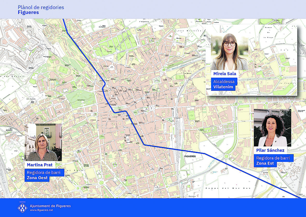 L’Ajuntament de Figueres vol potenciar la regidoria de barris per donar més veu a les associacions de veïns, apropar el consistori a les diferents zones de la ciutat i treballar colze a colze amb les entitats. Aquesta regidoria transversal està liderada per Pilar Sánchez i Martina Prat (zona est i zona oest respectivament) i per l’alcaldessa de Vilatenim, Mireia Sala. L’objectiu és promoure la participació de les associacions amb la presa de decisions i el contacte directe dels veïns i veïnes amb la regidora de barri de cada sector. Per aconseguir-ho, s’informarà periòdicament de les actuacions que es faran al barris i, alhora, es recolliran les inquietuds veïnals per canalitzar-les i donar-hi resposta. També es farà un acompanyament i es donarà suport a les associacions perquè siguin les referents de cada zona.