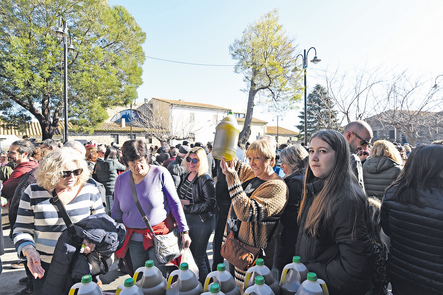 Finalitzada l’actuació, s’ha pogut veure com una bona part del públic desfilava cap a la zona d’aparcament. Una estampa que recordava una processó, tret que en aquest cas el que es carregava eren garrafes d’oli.