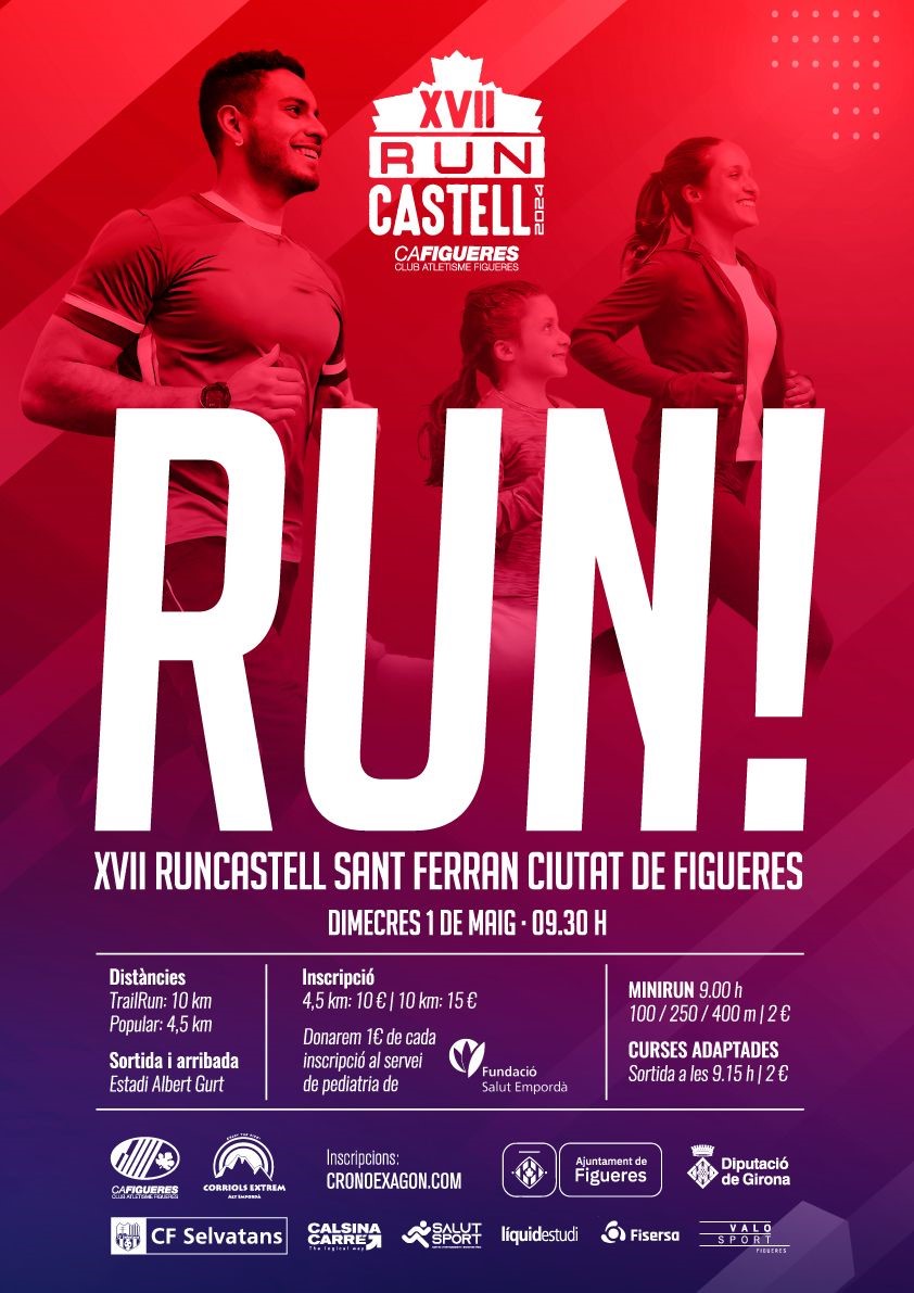 La 17a edició de la RunCastell ja està en marxa. El Club d’Atletisme Figueres i el grup Corriols Extrem, en col·laboració amb l’Ajuntament de Figueres, ja han marcat les pautes per a la celebració de l’esdeveniment, que tindrà lloc l’1 de maig amb diverses novetats. Una de les quals serà la transformació de la prova dels 10 quilòmetres, que en aquest cas esdevindrà una cursa trail: passarà per l’entorn natural del Castell de Sant Ferran i les Basses del Terrisser, amb trams carregats d’història. Per la seva banda, la carrera popular s’allargarà enguany fins als 4,5 quilòmetres.